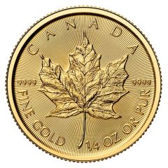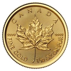 Die Royal Canadian Mint bringt seit 1979 die Anlagemünze Maple Leaf in Gold mit dem namengebenden und gleichbleibenden Motiv eines Ahornblatt auf der Motivseite heraus. Die Wertseite zeigt die britische Königin Queen Elizabeth II. Seit 2013 ist auf der Motivseite zusätzlich eine kleine Laser-Gravur als Sicherheitsmerkmal aufgebracht. Die Maple Leaf Goldmünze besteht aus 999,9/1000 Gold und zählt neben dem Krügerrand zu den beliebtesten Gold-Anlagemünzen weltweit, deren Wert sich nach dem Goldpreis richtet. Zu kaufen gibt es die Münze in den Größen 1 Unze, ½ Unze, ¼ Unze, 1/10 Unze und 1/20 Unze. Mittlerweile gibt es 1 Gramm Maple Leaf Goldmünzen auch als 8 x 1 g oder 25 x 1 g Einheiten im Blister, die kurz Maplegram genannt werden.